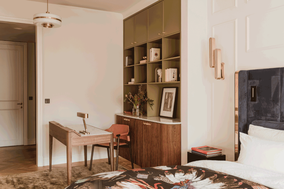 女从家虽然是一居室,硬拆尽量简单一些,定制了豆绿色的书柜、摆放实木书桌。日常平凡工做压力比力大,提拔整屋格调。看起来既有质感又不会有厚沉感。