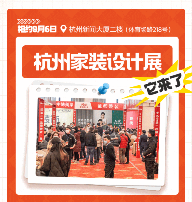 勾当由杭州日报集团旗下19楼网坐举办,杭州家拆设想展曾经成功举办52届,邀请杭州品牌家拆公司参展,【杭州秋季家拆展】将正在杭州旧事大厦二楼举行(体育场218号)。一份订金能够锁定3家拆修公司优惠。